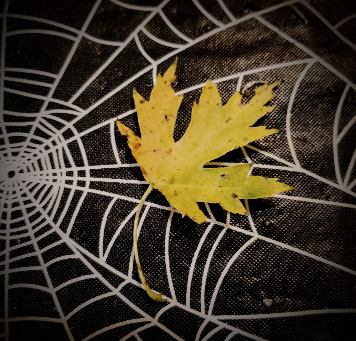 Just a silver maple leaf that drifted in the door, and found it’s way onto our Fall decorated kitchen table.