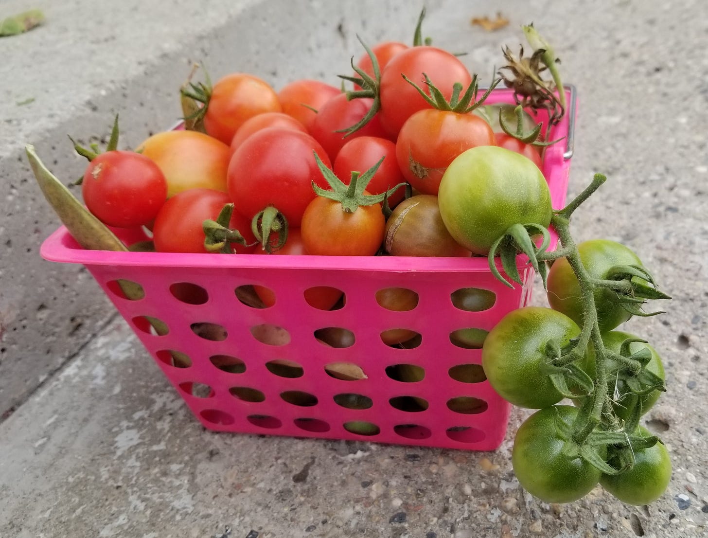 LandscapesHarvestA sampling of what could be harvested ahead of the first frostCountry Wild ChildOct 25, 2025ShareAn assortment of tomatoes ranging from green to red, although these were meant to be purple. In the corners - a Christmas bean pod, and morning glory seeds.
