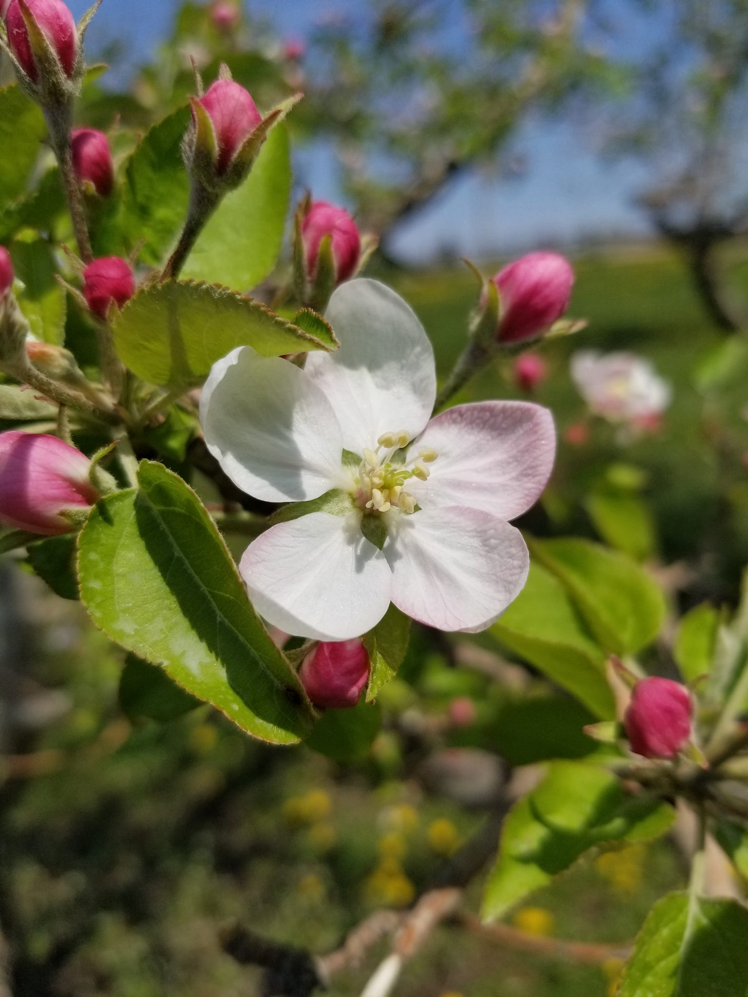 Bloom on an apple tree in April. The seasons march on with Nature’s agenda despite our man-made human issues. Life continues in the wild, no matter what. We need to grow along with it, or perish in the artificial world.